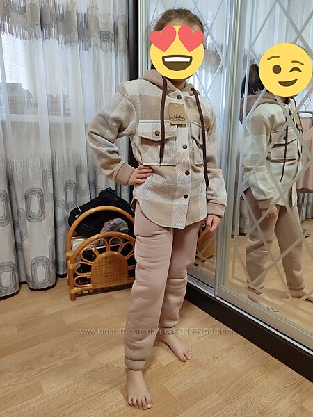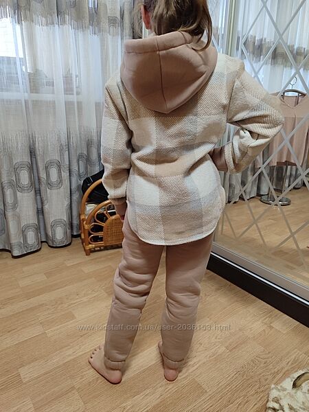 Подробное описание: Теплий костюм на дівчинку сорочка в клітинку штани джогери