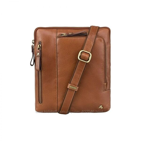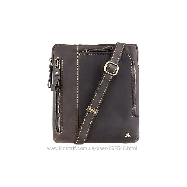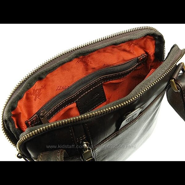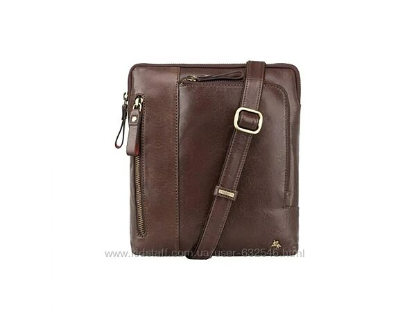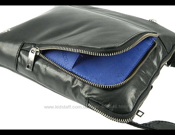 Матеріал: натуральна шкіра; Розміри: 23 х 26 х 6 см; Країна – Англія; особливості: всередині: 2 кишені на блискавці та 2 відкриті кишені; зовні: 3 кишені на блискавках; ремінь через плече, що регулюється по довжині; Упаковка: фірмовий протипиловий мішок із зображенням логотипу Visconti;
