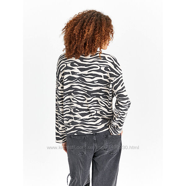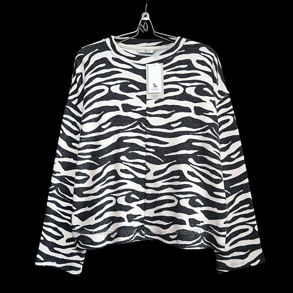 Сучасний м´якенький джемпер оверсайз з принтом зебра р,14