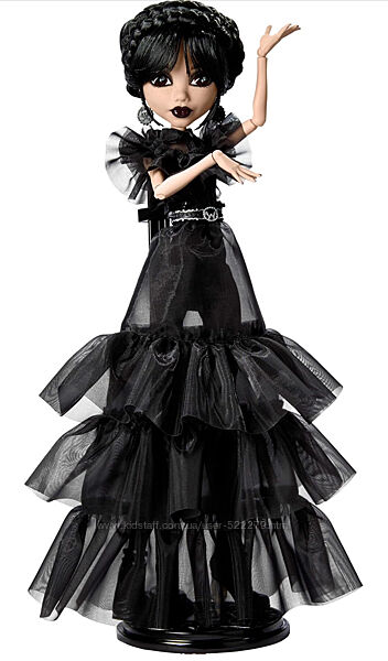 Тимчасова знижка!!Колекційна лялька Monster High Raven Wednesday ― точна копія героїні популярного телесеріалу Венздей Аддамс у культовому образі з танцювального вечора Rave´N! Одягнена в чорне плаття як бездонна прірва, Венздей вражає своєю зловісною елегантністю. Прозорі шари тканини нагадують темряву, що застигла у русі. Драматичний пояс, монструозні сережки, чорна помада та нігті завершують цей образ смертельної краси. Лялька взута в розкішні туфлі на підборах різних форм: один каблук виглядає як бурулька, а інший – як йєті, що втілює дух та головну тему танцювального вечора – кліматичну кризу та вимирання. О, ця скорботна ніч!