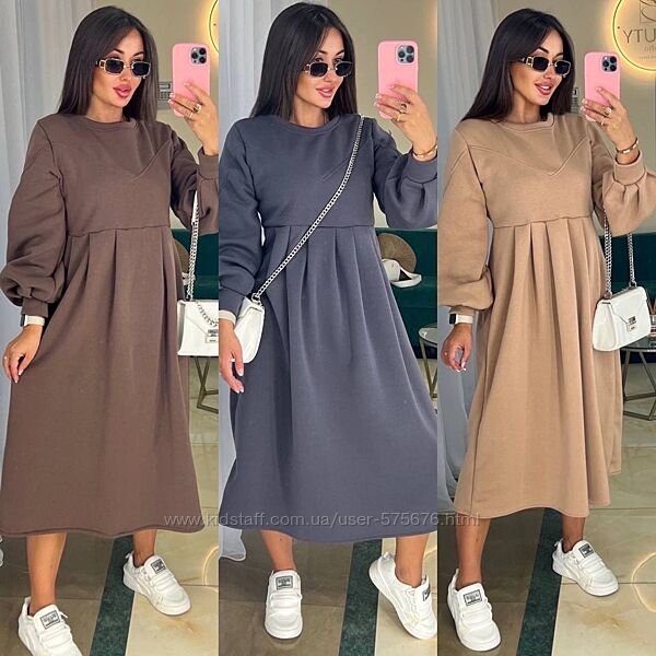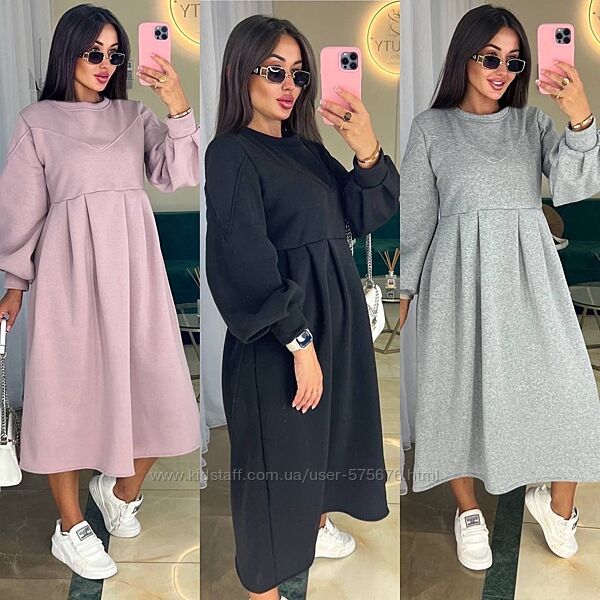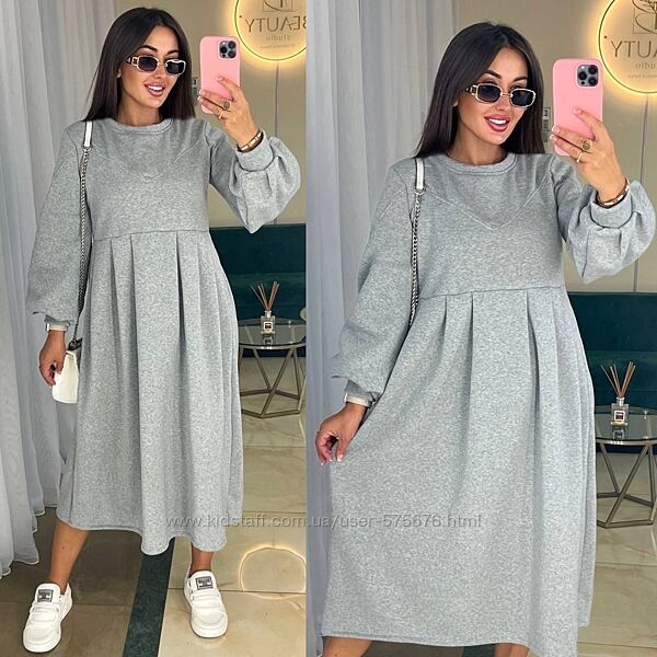 Подробное описание: 42-46, 48-52 Сукня Тепла Комфортна в Стилі OVERSIZE трьохнитка на Флісі