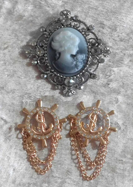 Подробное описание: Вінтажні брошки якір з підвісом та зображення дівчини