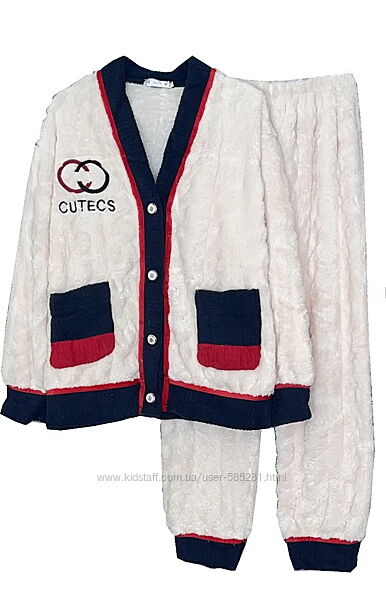 стильна тепла піжама в красивому елегантному дизайні, суперпреміум якість, тканина махрасофт преміум з фактурним тисненим малюнком, прикрашена кишенями, штани з поясом на гумці, манжети окантовки контрастного кольору стильно доповнюють дизайн піжами, розміри 44-50