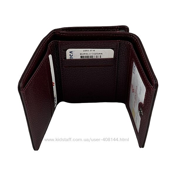 Дуже зручна та практична модель жіночого гаманця із натуральної шкіри на кнопці. Є відділення на клямці для монет. Усередині 1 відділення для купюр, та 7 кишеньок для кредитних карток. Є кишенька для фото чи документів.