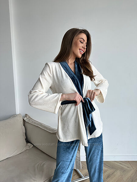 Christel 128 піжама домашній костюм жіночий короткий халат жакет штани і ма
