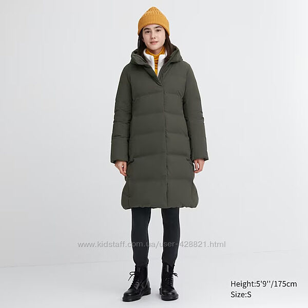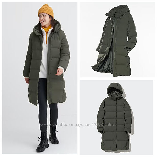 Жіночий зимовий пуховик UNIQLO Seamless Down. Оригінал. Новий. Колір олива. Щільна водонепроникна тканина. Склад Minimum 90% Down. Шикарна японська якість та мінімалізм! Розмір М