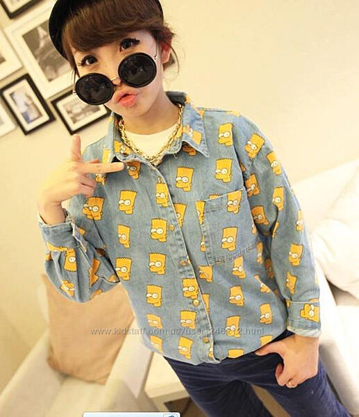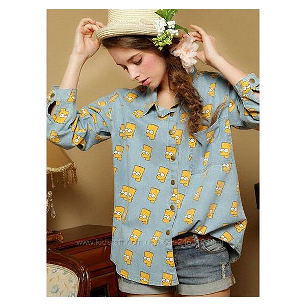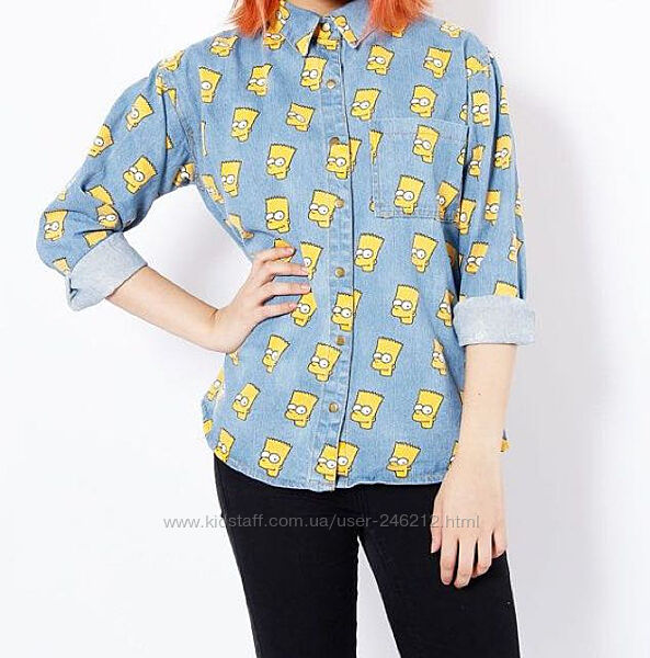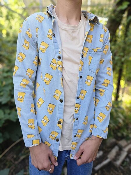 Класна джинсова сорочка з Бартом Сімпсоном.Застібка на кнопки, нагрудна кишеня.