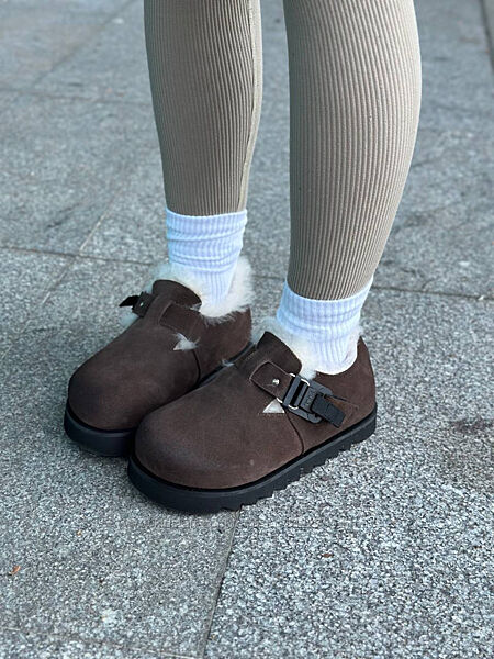 Клогі жіночі натуральна замша закриті на хутрі Артикул 5140з новинка