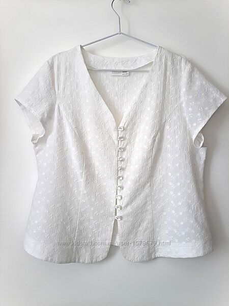 Ошатна блуза літня короткі рукави біла тканина з вишивкою шиття жіноча 54