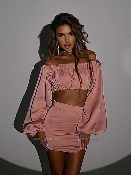 Подробное описание: Вечірній костюм атласний з асиметричною спідницею з топом з довгим рукавом