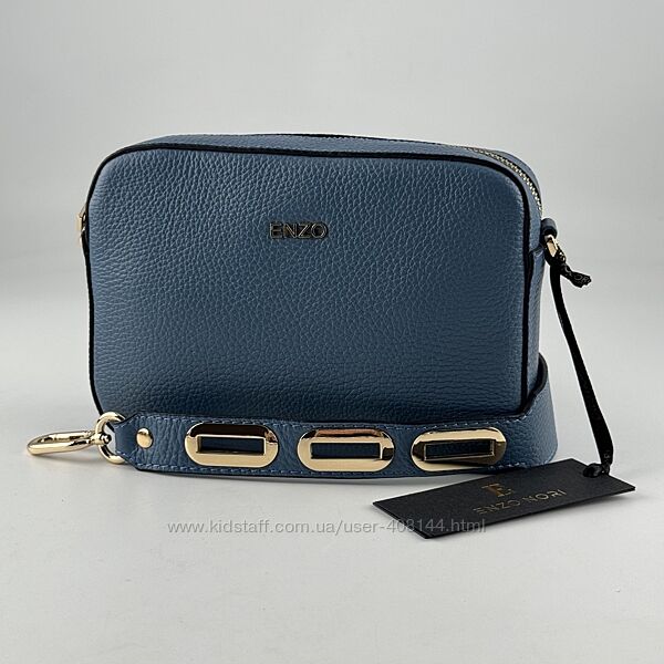 Сумка крос-боді жіноча шкіряна Enzo Nori EN1008-121 блакитна✔️ Розмір: 20x14x5,5
