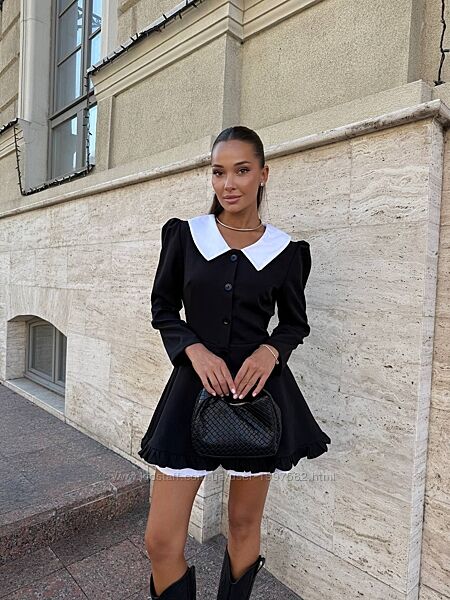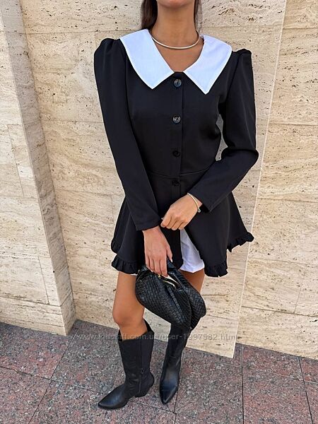 Подробное описание: Жіноча сукня міні з шортами з коміром з довгим рукавом чорна костюмка