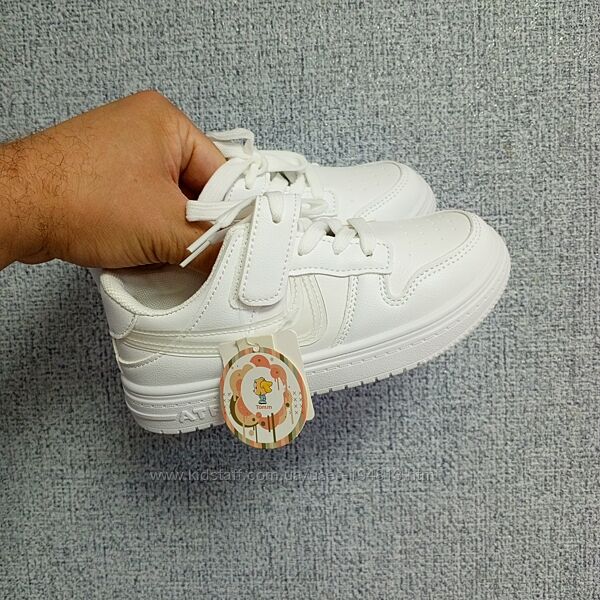 Красиві біленькі кросівки на дівчаток.Легенькі та зручні.Фіксуються липучкою.
