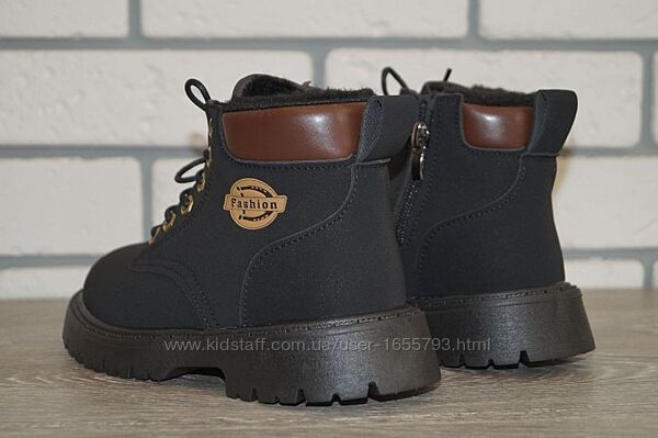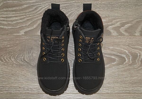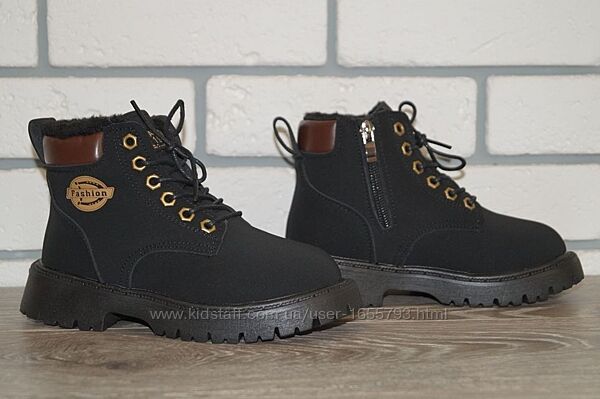 Новинка! Демісезонні дитячі черевики чорного кольору. Стильні, оригінальні, мають якісне пошиття. На ніжках виглядають акуратно.Пошиті зі штучного нубуку високої якості. Усередині підкладка та устілка з густого флісу. Застібаються на зручну бічну блискавку та функціональну шнурівку. Легка та гнучка підошва, антиковзна.