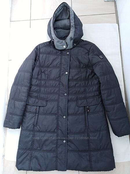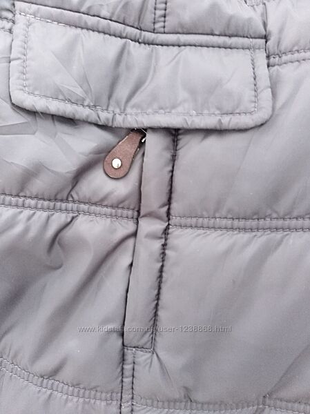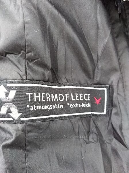 Куртка темно_серого цвета ,отделка из материала серого цвета, фурнитура с логотипом бренда,состав 100%полиестер, утеплитель Thermofleece _ лёгкая и теплая. Капюшон на кнопках.Размер нем.42 укр.48 L_XL.