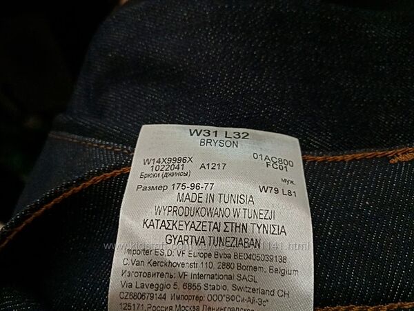 Мужские джинсы Wrangler Bryson Rinse Resin Оригинал. Art.N W14X9996X Новые. Состав материала 91% хлопок, 7% полиэстер, 2% эластан. Размер 31/32 Производитель-Тунис.Замеры: