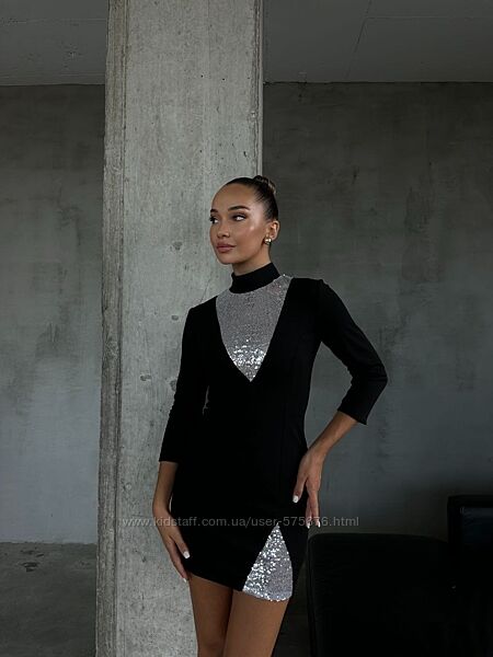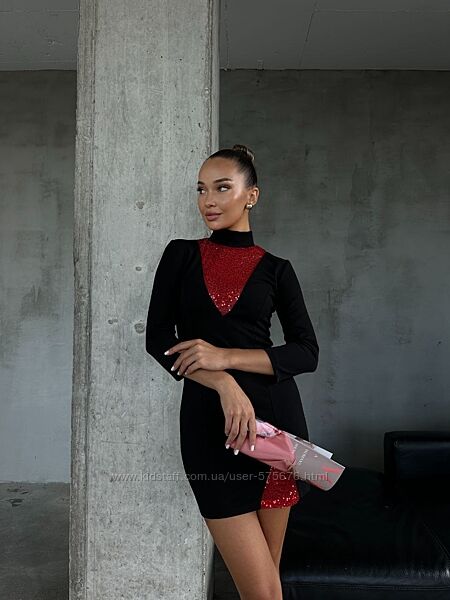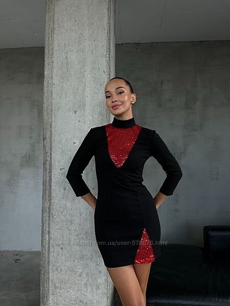 Коктейльна сукня на всі випадки життя.Тканина - креп-дайвінг, паєтка.