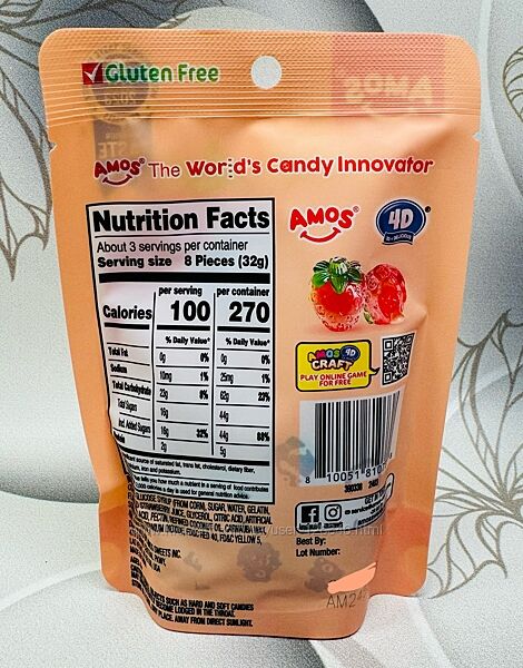 AMOS 4D Fruit Gummy Strawberry BurstВага 85грам