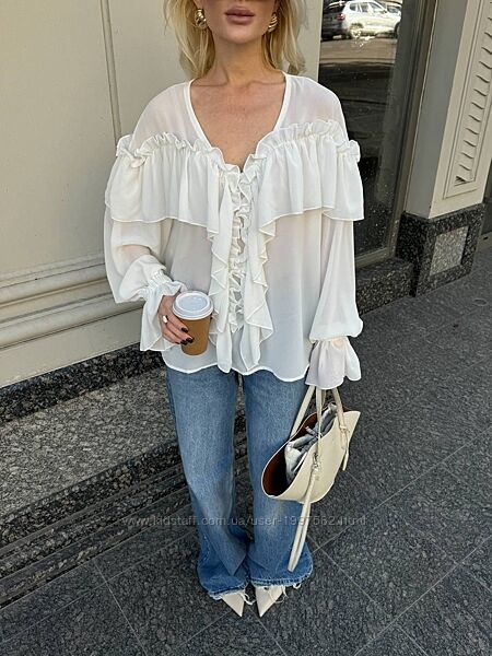 Подробное описание: Жіноча блуза бохо шифонова літня з довгим рукавом класична біла хакі