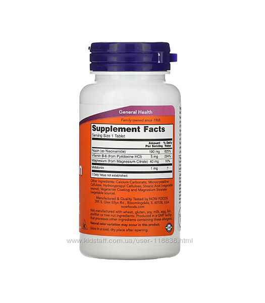 # NOW Foods, Мелатонин, 1 мг, 100 таблетокОПИСАНИЕ: