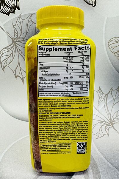 Lil Critters Kids´ Immune C Plus Zinc and Vitamin D290 желейних ведмедиків Immune C плюс цинк і вітамін D від L´il Critters - натуральні жувальні мармеладні ведмедиків з яскравим смаком соковитих фруктів та стиглих ягід: апельсиновим, лимонним, вишневим та полуничним. Це найпопулярніший дитячий вітамінний БАД в Америці без глютену, кукурудзяного сиропу, молочних продуктів, штучних підсолоджувачів, барвників та ароматизаторів. Препарат дозволений до вживання малюками, починаючи з двох-трирічного віку. Смачні мармеладки дуже подобаються дітям!