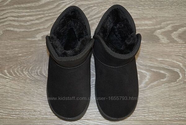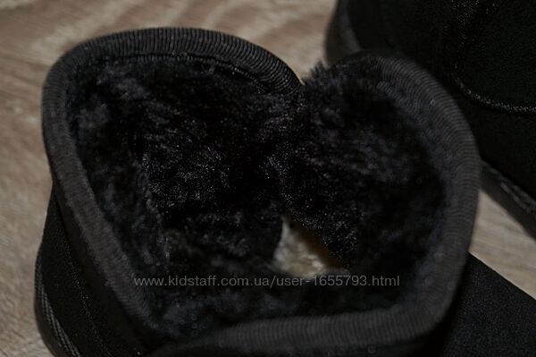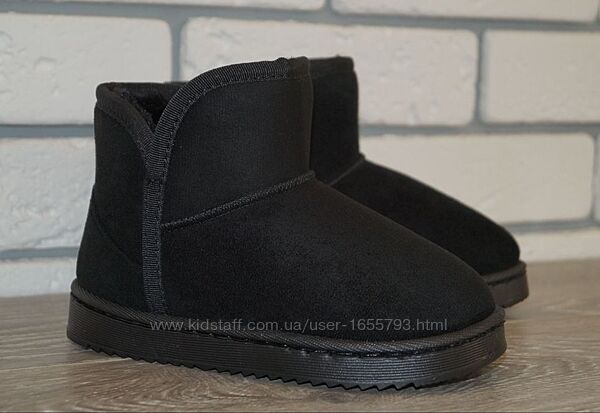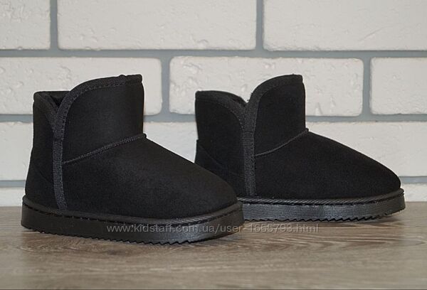 Новинка! Уггі дитячі зимові чорного кольору. Теплі, легкі, комфортні - чудовий варіант для повсякденного носіння в зимовий період.Пошиті з якісної штучної замші. Усередині підкладка та устілка з теплого та щільного штучного хутра. Уггі мають жорстку формену п´яту, яка підтримує стопу при ходьбі та зберігає вигляд та форму. Акуратний закруглений носочок. Підошва максимально легка та гнучка, антиковзна.