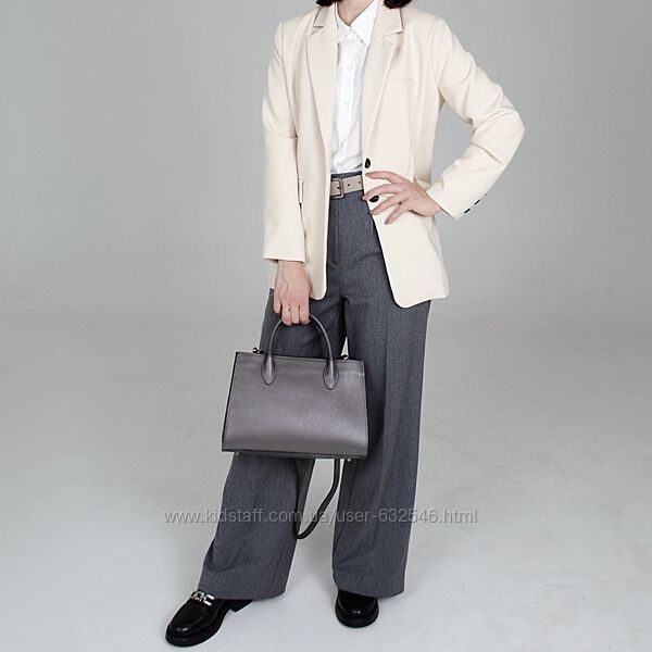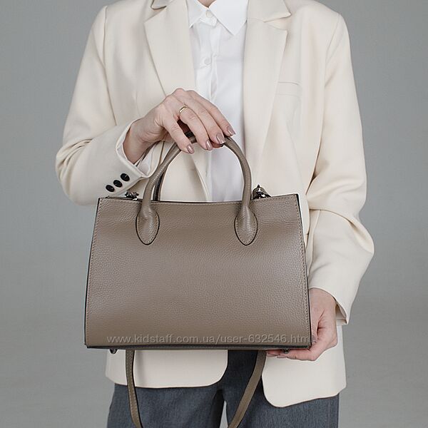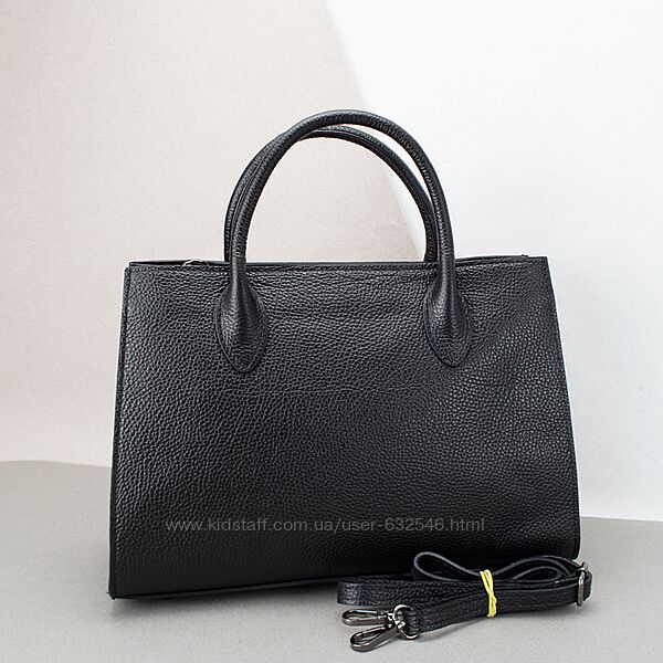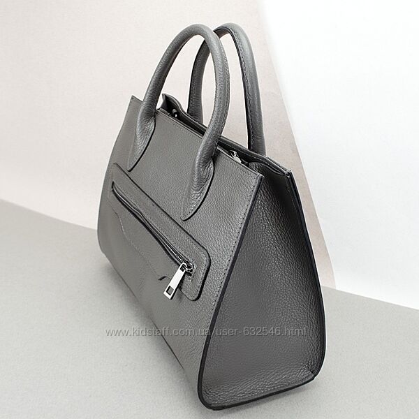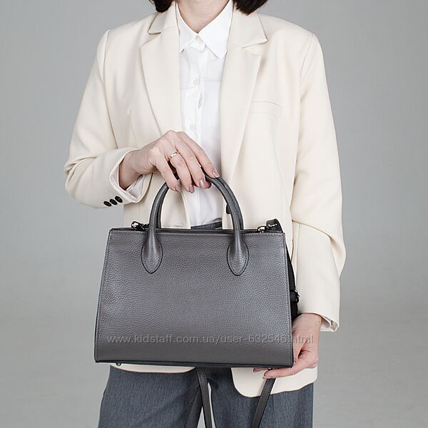Лаконічна стримана ділова сумочка. Одне відділення на блискавці з кишенькою всередині. На зворотньому боці сумочки також є кишеня на блискавці. Розмір: 32 x 22 x 13 см. Ручки: 2 незнімні ручки + довга знімна. Матеріал: натуральна шкіра флотар. Жорсткість: Середня. Підклад: Текстильна. Колір фурнітури Темний нікель. Країна виробник: Італія.