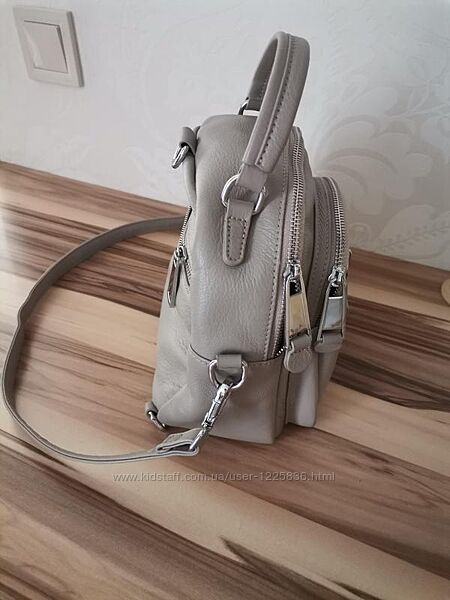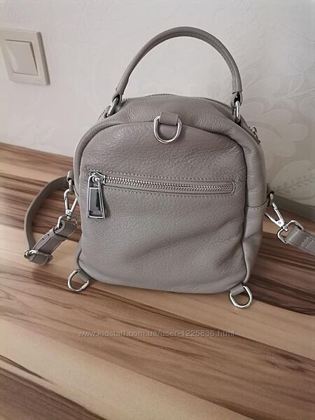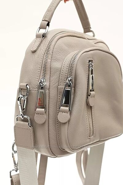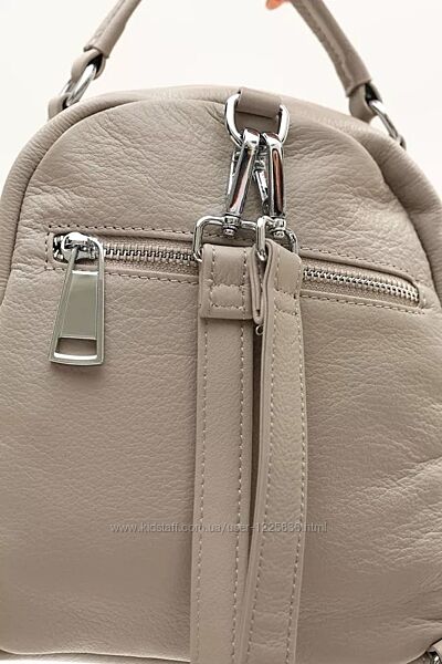 Стильный женский из натуральной кожи рюкзак-сумка со съемными ручками. Цвет : Бежево-серый. Размеры: ширина-19 см/высота- 20 см Закрывается на Молнию Количество карманов 6 шт. Страна производитель Китай ----- Предоплата 100% Отправка Новой Почтой Без торга, возврата, обмена