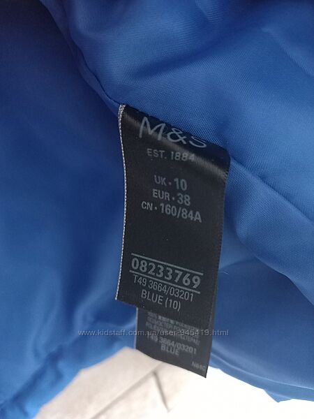 Cтьобана демісезонна куртка від бренда M&S. Куртка на блискавці. Є дві бічні кишені. Стан нової, без дефектів. Сток. Підійде розмір S-M. Колір синій.Склад: верх 100% — поліестер,