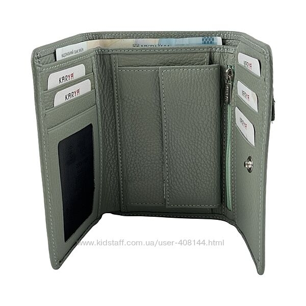 Гаманець жіночий шкіряний Karya 2004-026 фісташковий✔️ Матеріал натуральна шкіра зерниста зовні та всередині гладка шкіра;