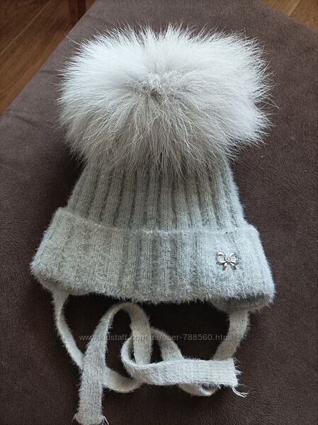 Зимова шапочка для дівчинки, всередині повністю на флісі. Добре тягнеться і зручно сидить, вушка закриті, на зав´язках. Виконана з пухнастою ворсистою пряжі. Зверху кільце із натурального песця. Дуже-дуже тепла, кращої не бачила. В цьому році купили таку саму, але без зав´язок. В ідеальному стані, розмір 52-56.
