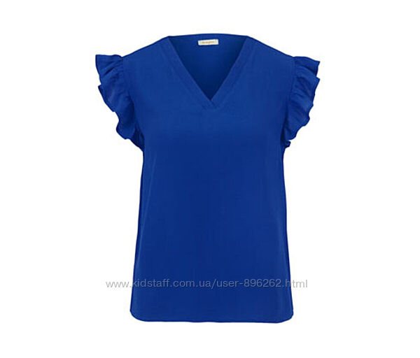 Блуза з V-подібним вирізом. З воланами на рукаві. М´яка якість, виготовлена з чистої віскози. Чайна має зріст 178 см і носить розмір 36. Це продукт бренду Fire & Glory.