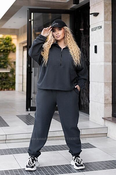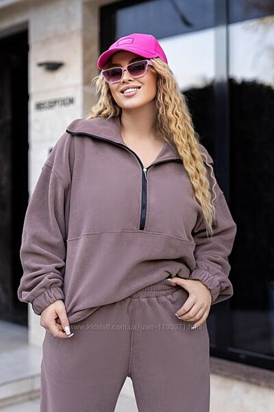 ▫️Колір: беж, чорний, графіт. ▫️Матеріал: турецький фліс полар. ▫️Кофта: вільного крою, без капюшону, без кишень, нижній манжет на регульованій гумці, манжети рукавів з гумкою. ▫️Джоггери: висока посадка, пояс на гумці + шнурок, манжети на гумці.