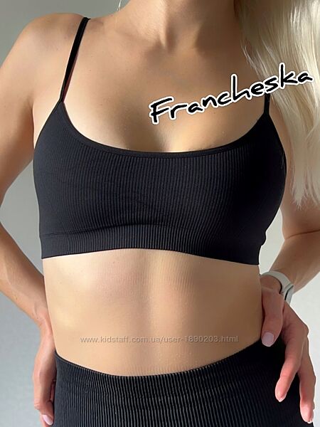 В наявності є ще коричневй та ліловий колір безшовного топу в рубчик.