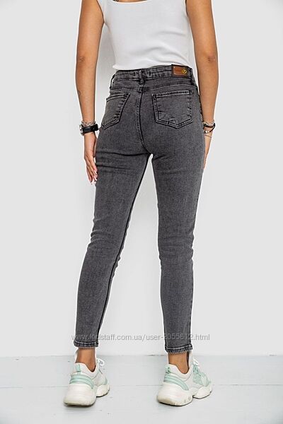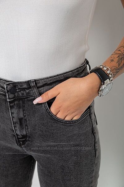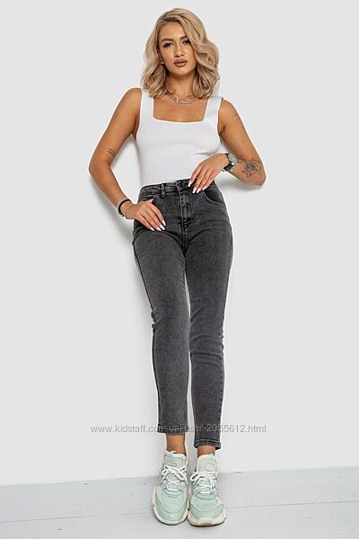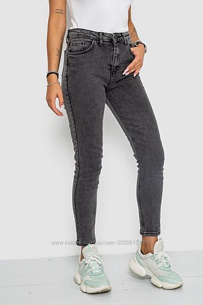 Однотонні жіночі джинси сірого кольору мають високу посадку. Модель