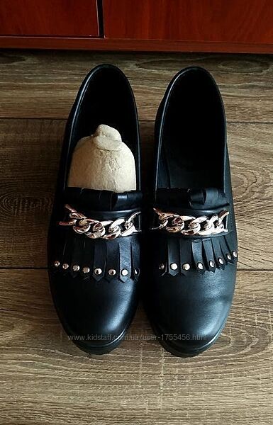 Новые кожаные лферы на толстой подошве /стильный дизайн