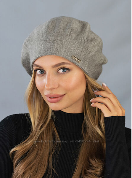 Берет вязаный женский флис темный кофе Карнелия