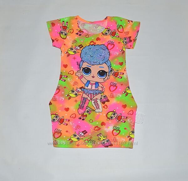 Сукня туніка для дівчинки, бавовна 100%, LOL, з лялькою Лол. Розпродаж терміновостильна сукня - туніка порадує Вашу дитину