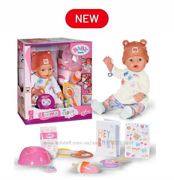 Знайомтеся з Еммою! Вона любить бути схожою на Тедді. Вона один із головних персонажів у новому мультсеріалі, заснованому на ляльках всесвіту BABY Born. Емма дуже допитлива, доброзичлива та активна. Вона часто допомагає своїм друзям долати труднощі та знаходити рішення в різних ситуаціях. Завдяки своєму оптимізму та бажанню допомагати, Емма є позитивним прикладом для дітей, які дивляться серіал.