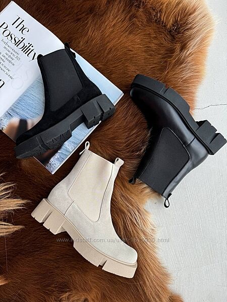 Подробное описание: Зимові жіночі черевики челсі натуральна шкіра/замш 36-40