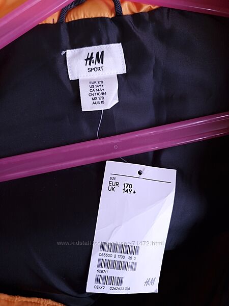 Колір, як на першому фото. Новий, яскравий жилет H&M зі спортивного розділу. Тоненький, дутий, дуже легенький. Висота спинки - 66 см. Ширина - 48 см. Кишені відсутні.
