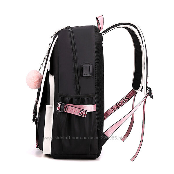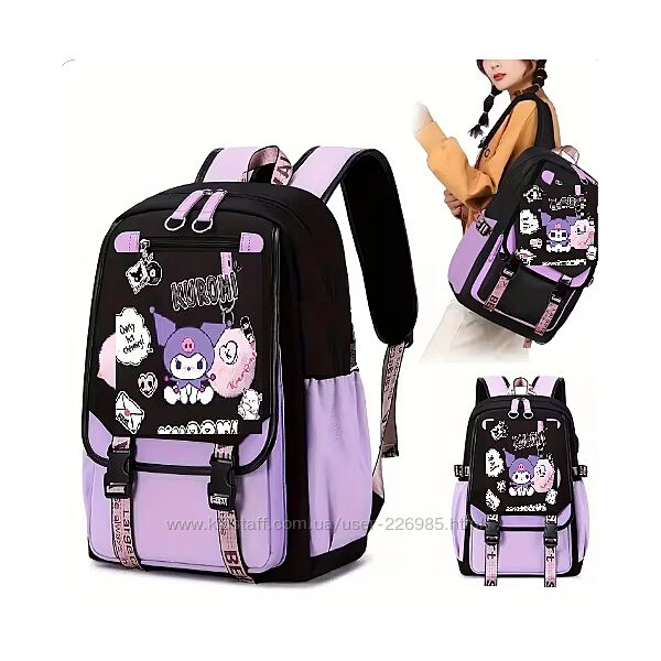 Подробное описание: Шкільний підлітковий рюкзак з помпоном та USB кабелем KUROMI для дівчинки