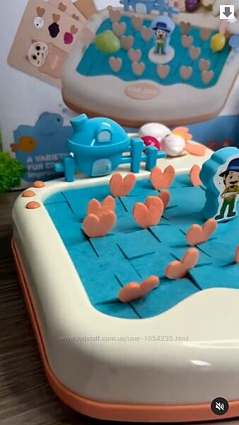 2. Развивающая игра "Рыбалка Монтессори". Развивающая игра на внимание, моторику. Суть игры: нужно разместить в пруду рыбок, но при этом запомнить, где и в каком участке размещена та или иная рыбка. Потом необходимо поймать рыбок, которые указаны на карточке с заданиями. Играя, ребенок развивает внимание и зрительную память, а также мелкую моторику. Рыбок удобно помещать и вытаскивать за фетровый (мягкий) хвостик. В наборе: рабочее поле-озеро 1 шт., фигурка рыбака 1 шт., рыбки 24 шт. Возрастная категория 3+. Цена: 400 грн.