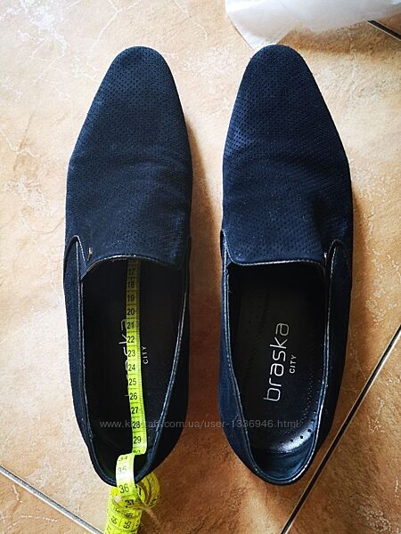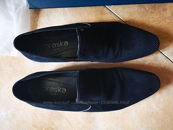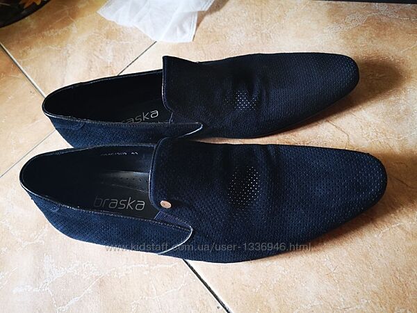 Туфли BRASKA мужские летние в мелкую дырочку из натуральной замши темно-синего цвета; размер написан 41й, но подойдёт на 43й, длина стельки 29 см. Б/у, хорошее состояние, одевались пару раз. Предоплата на карту. Доставка за счет покупателя.Другие объявления продавца