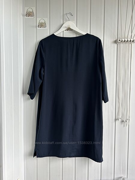 Класичний крой, просто ідеальний на будь-який випадок буде актуально. Темн-синя. Декорована золотими змійками на бедрах. Рукав 3/4 Ідеальна в догляді, не мнеться Довжина 92 Рукав 41 Плечи 42 ПОГ 53 ПОТ 55 ПОБ 56 На М можна