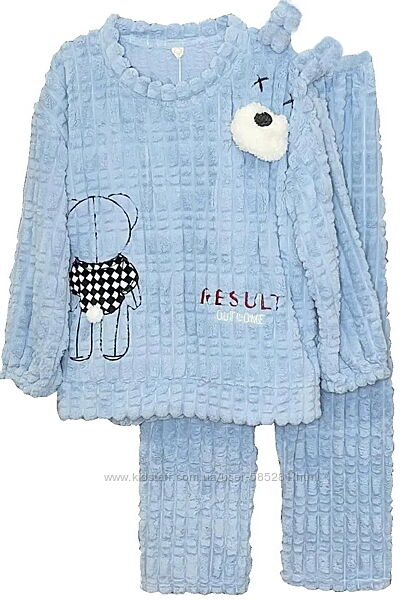 тепла піжама в якісному виконанні зігріє Вас в холодну пору року, приємна до тіла, дуже м´яка і комфортна, вільного прямого крою, тканина фактурна махра преміум, прикрашає цікавий фактурний малюнок та аплікація, штани з поясом на гумці з досить широкими прямими довгим рукавом прикрашена аплікацією з вишивкою, розмір один, підходить на розміри 42-46