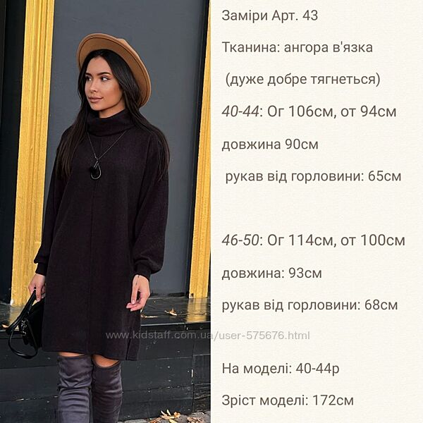 Сукня ангора в´язкаГорловина хомут, не тисне, та добре прикриває горло. Спокуслива стрічка додасть витонченності, а розрізи збоку додадуть привабливості образу
