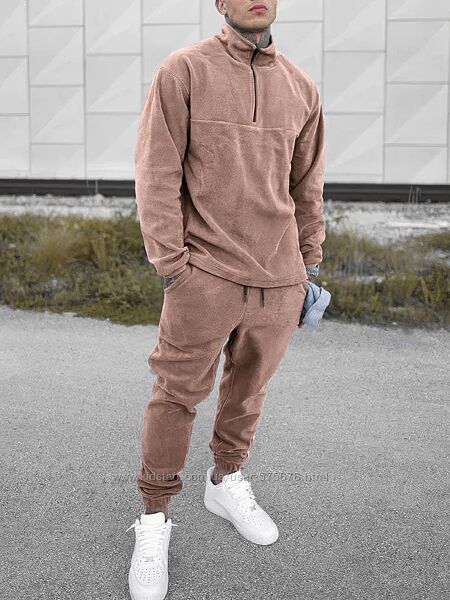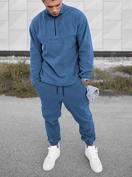 Верх костюма має високий комір на блискавці,що додає практичності й забезпечує додатковий захист від вітру.Штани виконані у вільному стилі з еластичним поясом зі шнурком.