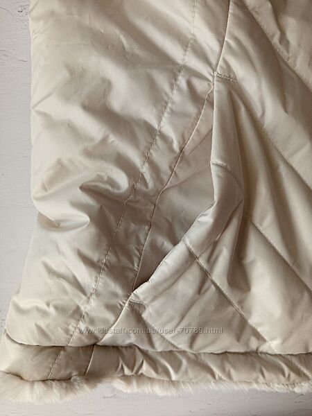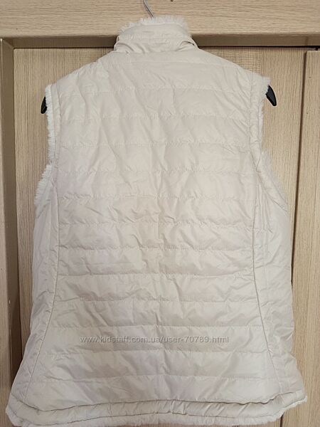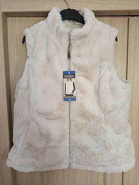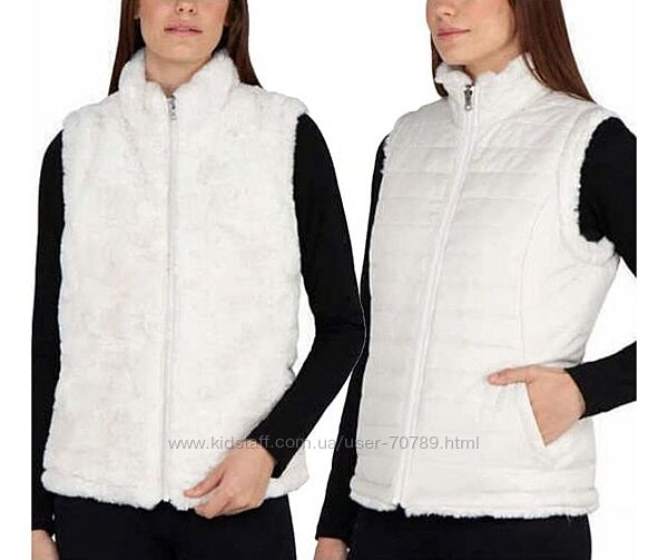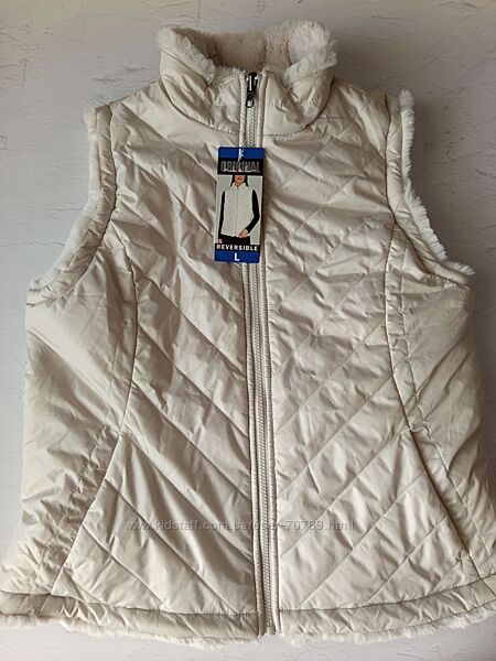 Женская двусторонняя уютная стеганая безрукавка жилетка Nicole Miller с искусственным мехом и утеплителем размер L цвет слоновая кость. Теплый и удобный двусторонний жилет Nicole Miller сохранит ваше тепло благодаря супермягкому искусственному меху и легкому утеплителю из полиэстера. Имеет застежку-молнию спереди с двусторонней молнией, стеганый верх, воротник-стойку и два передних кармана с обеих сторон. Красивый цвет слоновой кости. Замеры (замеры по верху изделия): Длина: 63 см ПОГ: 50 см ПОТ: 50 см ПОБ: 55 см