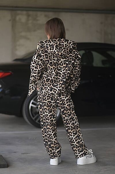 р.146 до 170р. Костюм леопардовий оверсайз тринитка з начосом